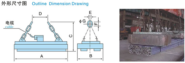 采用雙形結(jié)構(gòu),磁場透磁深自重輕,非常適合吊運捆扎后的建筑用異形棒材和普通圓鋼,也可用做吊運型鋼或鋼錠模。