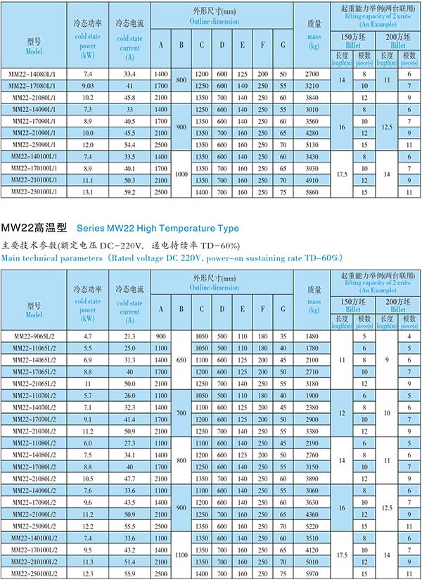 產(chǎn)品特點(diǎn): 適用于吊運(yùn)大鋼錠、大型初軋坯和型鋼等,能在狹窄的吸附面積內(nèi)產(chǎn)生較大的透磁深度,無需根據(jù)吊件的變形或扭曲調(diào)節(jié)吸力,可在有一定間隙 的情況下起吊鋼材。對(duì)數(shù)據(jù)高低參差不齊的鋼材,也可產(chǎn)生強(qiáng)大磁力吸住,安全起吊。采用天平式的雙層橫梁,彎曲大的長(zhǎng)鋼材也可穩(wěn)定地進(jìn)行搬運(yùn)作業(yè)。水冷高溫 用電磁鐵為我公司的吸吊超高溫鋼材用電磁鐵,散熱效果好,使用壽命長(zhǎng)。按聯(lián)用臺(tái)數(shù)的消耗功率之和,選擇控制設(shè)備及其它輔助設(shè)備。當(dāng)被吸坯、梁尺寸與樣 本不符,或單次吸吊的根數(shù)與樣本不符時(shí),我公司可根據(jù)用戶實(shí)際使用情況,特殊設(shè)計(jì),滿足用戶的不同要求。 |