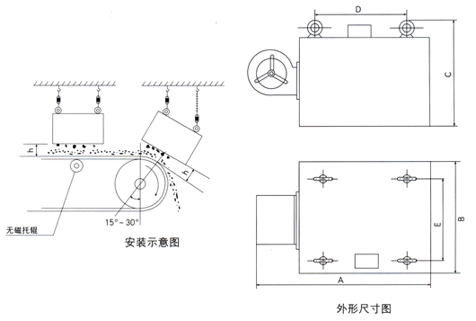 RCDA系列風冷懸掛式電磁除鐵器安裝示意圖: