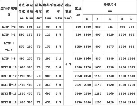 RCYP-Ⅱ系列永磁自缷式永磁除鐵器主要技術參數: